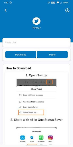 4. Twitter Video Downloder : Twitter videos can be downloaded by copy pasting its link or sharing video to Eazy Video Downloder.