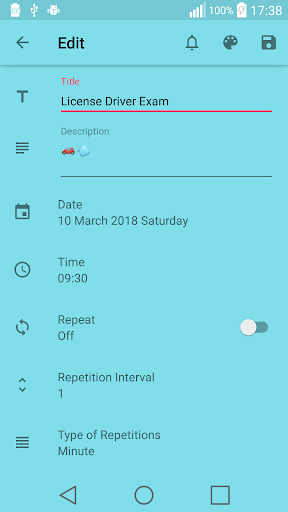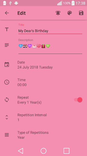 • Periodic reminder feature as minute, hour, day, week, month and year