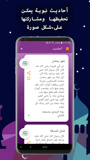 - You'll also be able to read Hadeeth, bookmark, and share them with the ability to customize the image before sharing.