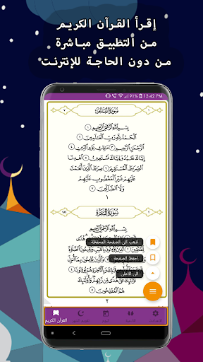 - You'll be able to read the holy Quraan directly from the app, and you can save the page you're reading to be able to go to that page and continue from where you left at any time. and this section can function normally even without an internet connection.