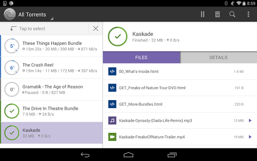 Find torrents and download them directly to your phone or tablet, AD-FREE, with the official BitTorrent® Pro app for Android -- now with battery saving and auto-shutdown features.