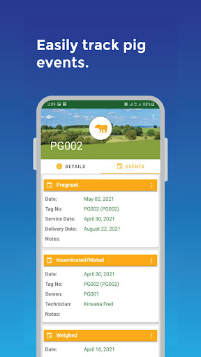 The app also allows farmers to track pig events such as weaning, giving birth, and linking piglets to dams and sires, treatments, vaccinations, etc with ease.