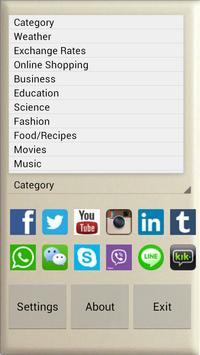 The Concept is based on making it simple, light and fast. Open the APP, select the search Engine you like and away you go or select a Category followed by the site of your preference.