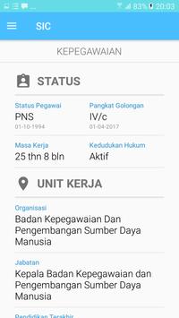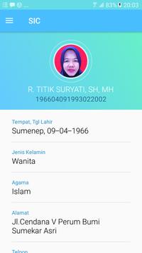 Aplikasi ini berfungsi sebagai alat untuk memindai / scan data kepegawain yang terdapat dalam SIC. Semua data dan informasi kepegawaian pokok kepegawaian dapat dilihat dalam aplikasi ini. SIC juga membantu para PNS di Lingkungan Kabupaten Sumenep untuk mengetahui secara mandiri data absensi biometrik dalam periode tertentu secara real time. Segala data dan informasi yang terkandung dalam SIC sudah TERINTEGRASI PENUH dengan database kepegawaian dan absensi online.