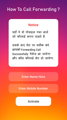 First Enter Mobile Number to Whom you Redirect call in Active Service.