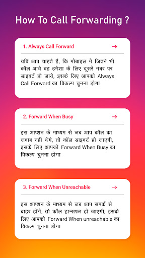 The Call Forwarding app is an easy and simple application to use for forwarding your incoming call to another number.