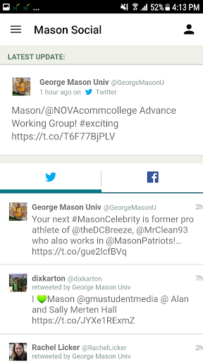 Stay connected with George Mason University wherever you are. Find out how to get around our campuses, take a self-guided tour, stay up-to-date with the latest campus news and events, keep tabs on the winning ways of the Patriots sports teams, and more. It’s Mason in the palm of your hand!