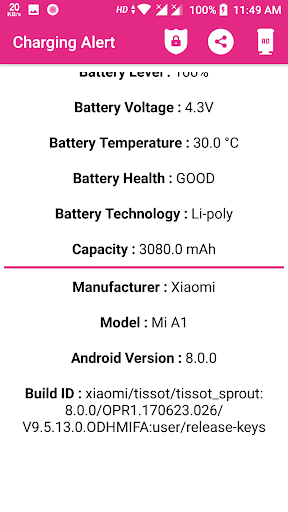 This application give following information about your battery