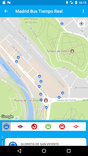 Muestra las paradas cercanas en el mapa escoge el tipo de transporte bus, metro, cercanías, interurbano o metro ligero.