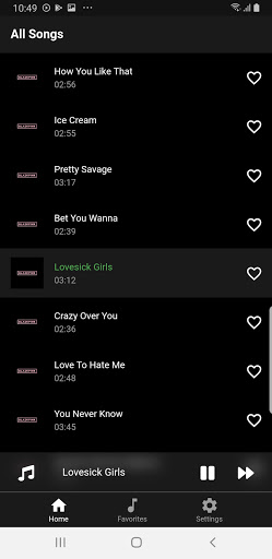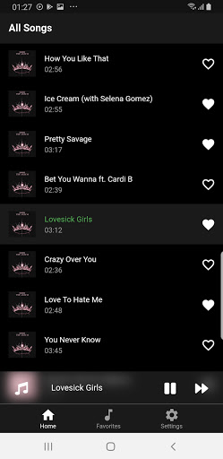 Blackpink all songs application, you can listen offline (without need internet). You can find all album and songs on this app. Play on background and more features. If you are a fan of Blackpink KPOP Songs, then you will love this app! You will find all the top hits of the song of Blackpink here.