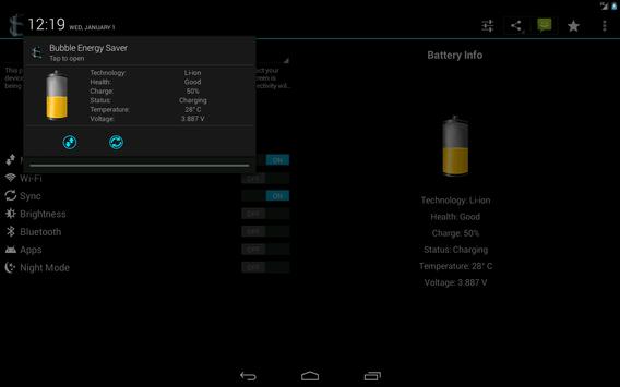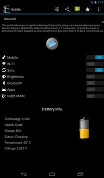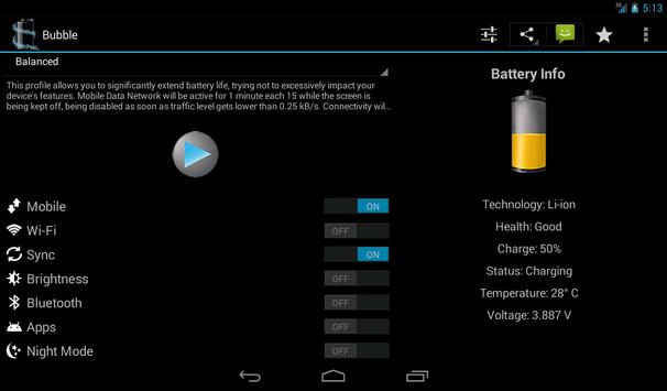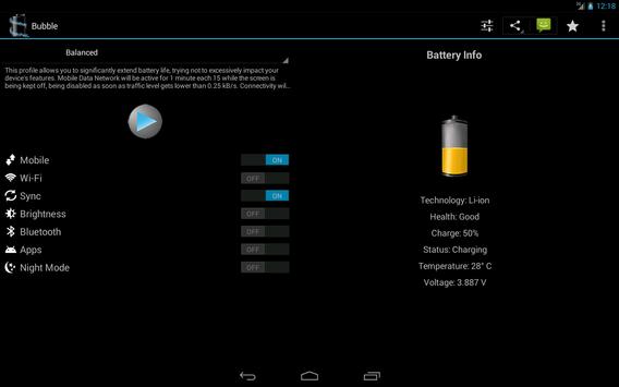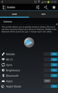With Bubble Energy Saver you won't risk forgetting to disable battery-draining features anymore, and you can be sure they'll be available at the time you really need them.
