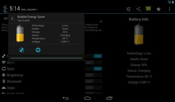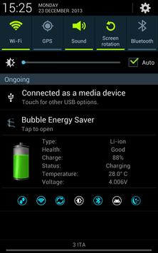 Bubble Energy Saver makes your battery last longer, smartly managing your device on your behalf. Are you always worried about your battery running out of energy in the middle of the day? Do you feel frustrated when you notice your battery's quickly draining, even though you haven't used your phone that much?