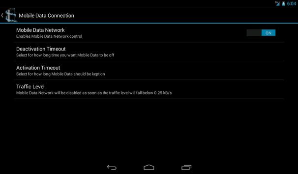 - Total Mobile Data control: you'll be able to set activation/deactivation timeouts, choosing among a bunch of preset options.