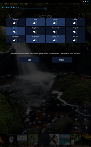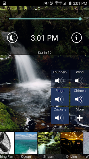 Sleep is a sound machine that combines 20 soothing natural ambient base sounds like rain, fire, wind, birds, fan, ocean, stream, white noise, city and more! Each base sound can be used with accompanying accent sounds like thunder, wind, frogs, crickets, chimes, seagulls, loons and more to provide you with a custom sound machine for a good night's sleep. No Ads!