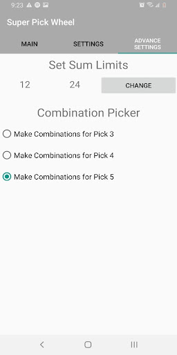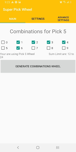 This app can do wheel for pick 3, pick 4 and pick 5. All the the picks in only one app.