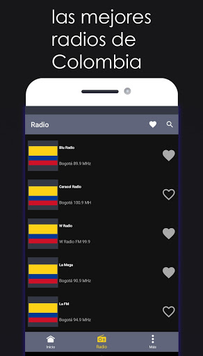 Radio AM FM Rádio Estações Colômbias A Colômbia tem uma interface gráfica intuitiva e agradável, onde você pode ter ferramentas úteis, como buscas ao remetente, adicionar aos favoritos e compartilhar um emissor para seus amigos.
