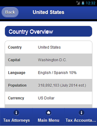 This application is an essential tool for every business person, attorney, accountant or investor that is looking to do business in the global market, as it provides the tools and information to become an international advisor on the go.