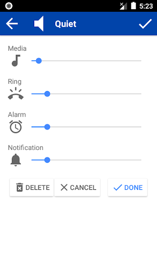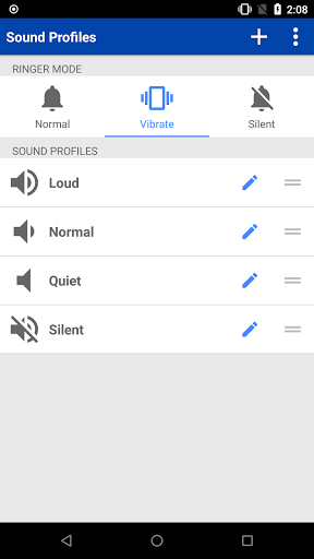 With this app you can witch predefined profiles. You can change, delete, or add new sound profiles. Any profile can be activated from within the app or from widgets. Using 2 types of widgets on you home screen you can apply the profiles that you have set-up. You can choose between:
