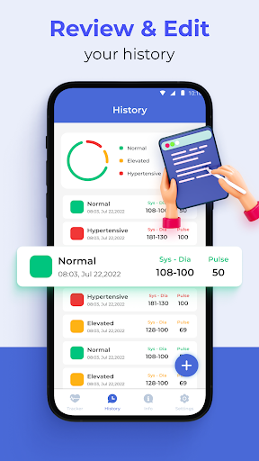 This blood pressure tracker app is for people who want to take blood control of their health and start living a healthy lifestyle. Keep check blood pressure numbers, the great way is to write a blood pressure diary every day. You will see how your BP changes from day to day and that helps you see the connection between lifestyle habits, medication side effects, or if your numbers are within the normal range.