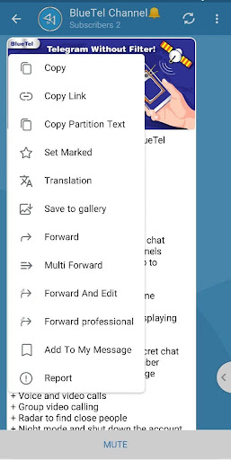 BlueTel is the name of the unofficial version of Telegram Messenger for Android smartphones that uses the api of the original version of Telegram Messenger. BlueTel has all the features of the original Telegram, in addition to the new and various capabilities added to it, we mention them:
