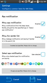 - Save notifications for phone, SMS and all app notifications during a specified sleep time.