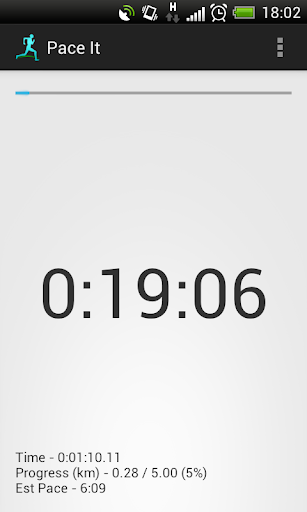 Pace It is a simple app for runners, which uses GPS to show estimated finish time in large/easy-to-read text. The projected finish time updates automatically in real time to reflect changes in pace through the run, and the screen stays on while the app is active.