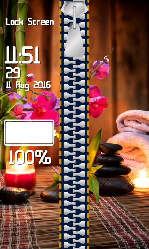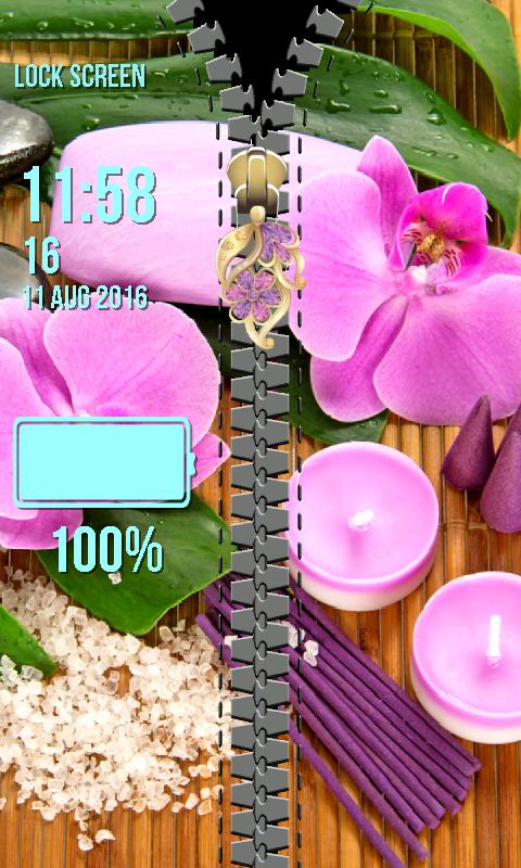 It has been a long day at work, and all you crave for now is a soothing massage. If you are not in disposition to go to a spa we are bringing you something that will help you relax at the comfort of your home. If you download for free the popular Zipper Lock Screen Orchid app, you will feel a part of the splendid atmosphere. The sweet scent of beautiful blossoms will intoxicate you completely and you will enjoy the flickering light of candles. Hot pebbles are ready for you, and scented sticks are also there to make everything more relaxing. Drag the hook to unzip the zipper unlock for screen and gorgeous garden will appear on your smartphone or tablet. Choose the photos from your gallery that you would like to see on the foreground or background, and personalize your device. Gaze at the gentle flowers and ponder about your life. All of a sudden the feeling of serenity will come all over you. With this top Zipper Lock Screen Orchid you will get a perfectly embellished screen.