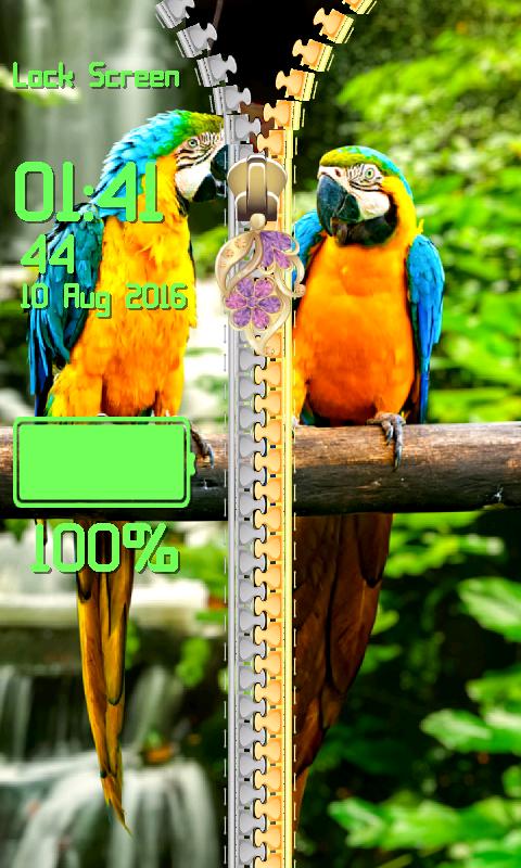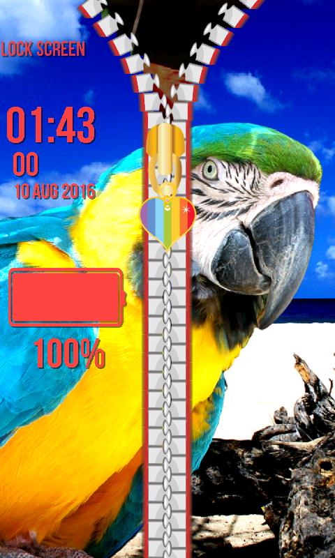 Zipper Lock Screen Parrot
