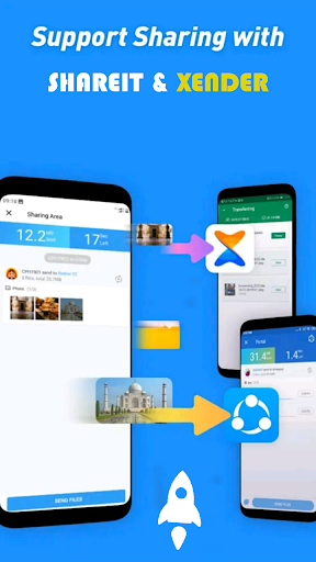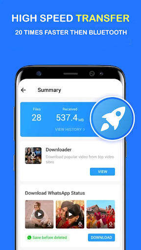 can transfer all your files perfectly. Install this app and share it with your friends and family. This file transfer app you just have to select your file or video share it will transfer them to your friends phone at a lightning speed even without any network.