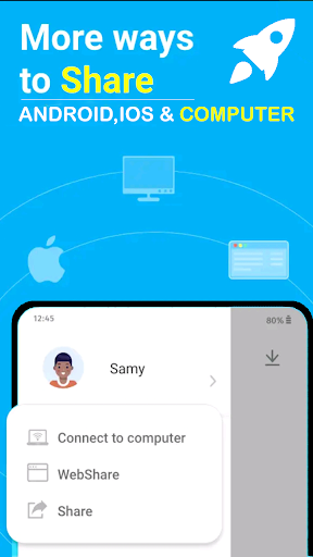 Latest app for file transfer, Android to Android file transfer, Android to I Phone file transfer, Android to PC file transfer and Photos, Videos , PPT , PDF all file easy sharing in this app.