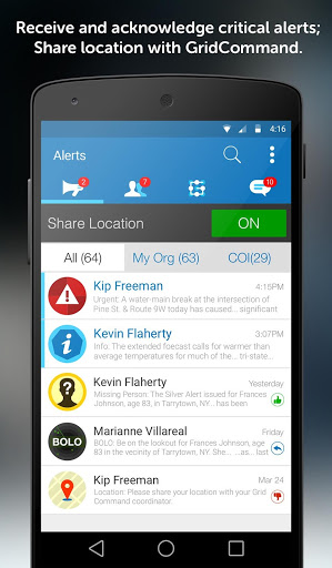 Acknowledge received alerts with "Accept" or "Reject" status, or choose "Reply" to alert sender with additional input. Push notifications will let you know when a new alert is received. Read receipts let your coordinator know whether you've seen the alert. A backup email will let you know about an alert when you're away from your phone.