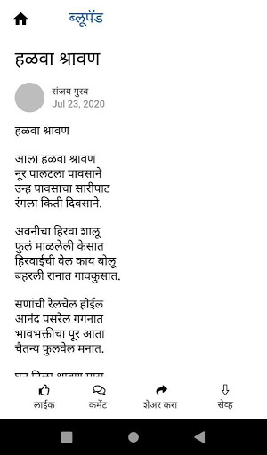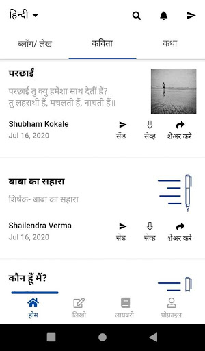 ब्लूपॅड अ‍ॅप लेखन पढ़ने और लिखने का मंच है। इस्पे आप अपने लेख, ब्लॉग, कविताएँ, कहानियाँ, अपनी पसंद की भाषा में पढ़ और लिख सकते हैं। हमारे साथ अपने अनुभव को शेअर करें और अन्य लोगों तक पहुंचाएं