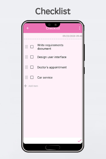 The useful checklist function allows you to create clear checklists such as to-do lists, shopping lists or task lists, and also allows you to cross out items on the list when they are completed without having to delete them, in case you need to refer to the original list later.
