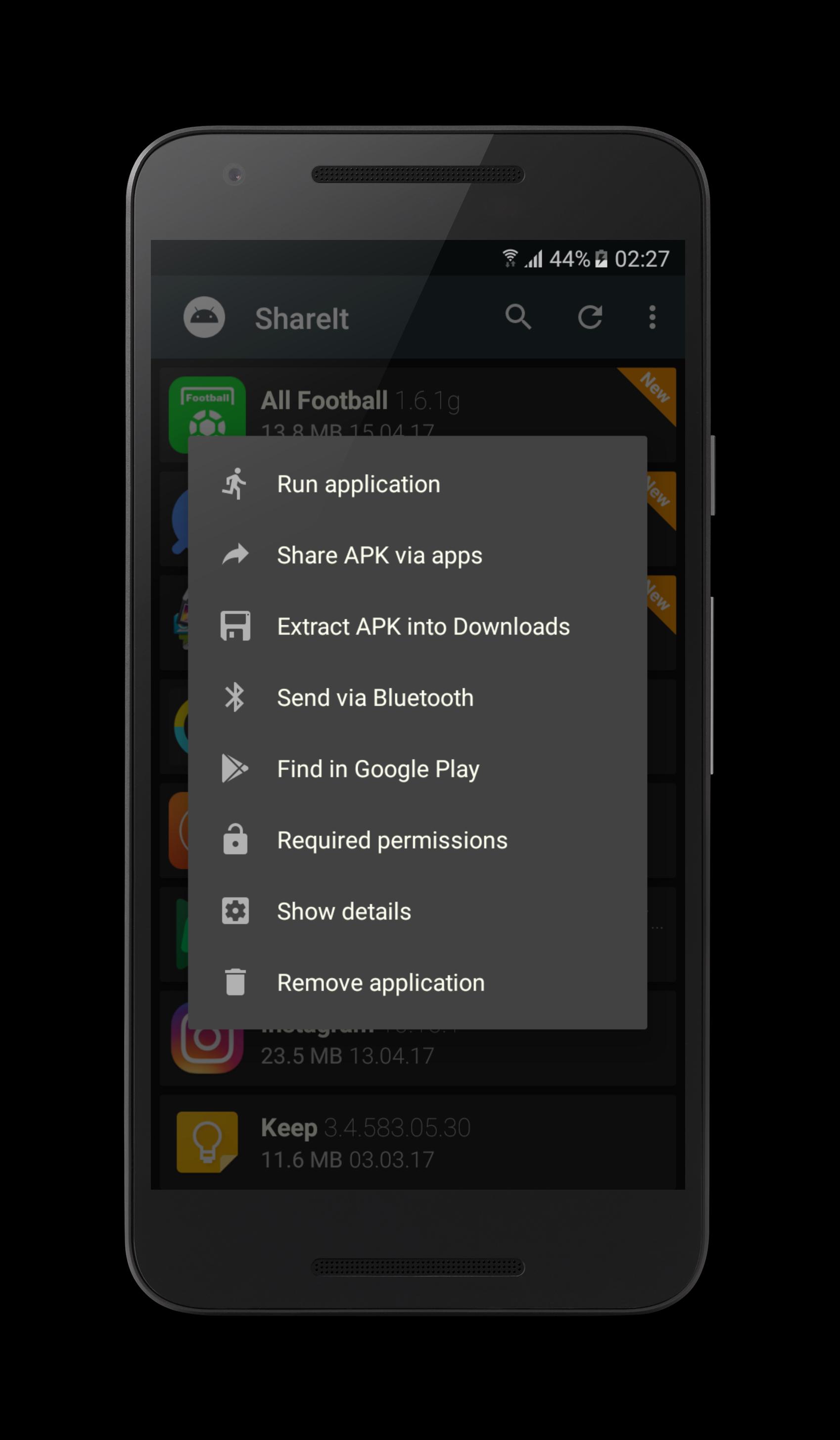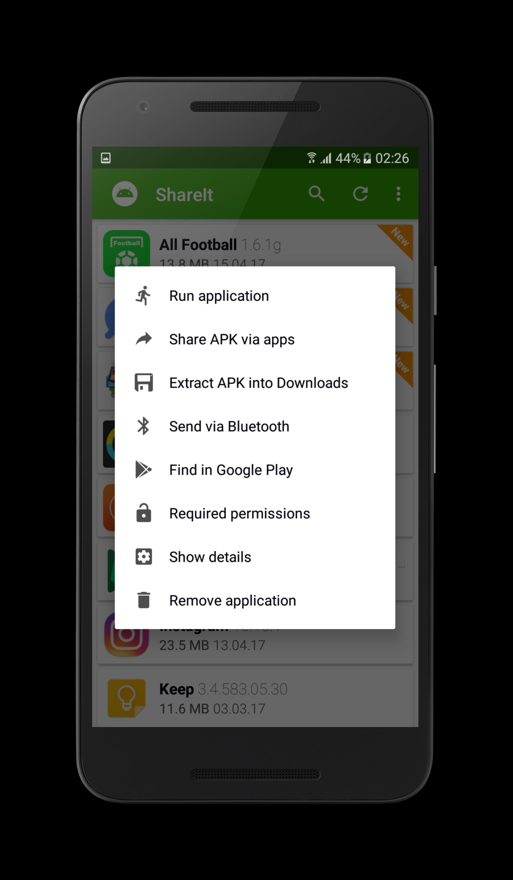 It is an Apk extractor allows you share it (app) easily with your friends through Bluetooth, it is an share it which extract apk and offers you multiple options to share it (app) via bluetooth, wifi direct or send it via email.