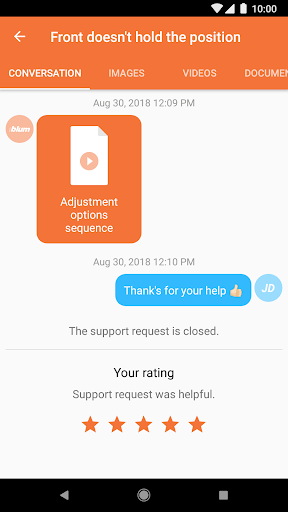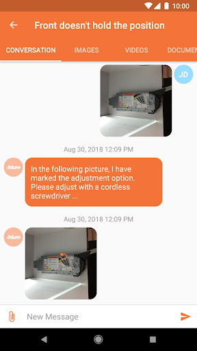 The LIVE SUPPORT app from Blum is designed to help make your life as easy as possible. With the options of text, image and video messages you are exchanging information directly with our experts. You can also insert comments and annotations on to your pictures, and for more complex questions our specialists can carry out calls and video transmissions, via the integrated Voice over IP (VOIP) function. LIVE SUPPORT means the answers to all queries about Blum products and processing. Our service team supports you during regular business hours. But you can send us your request at any time. Together with the EASY ASSEMBLY app, the LIVE SUPPORT app is a valuable companion to your daily work.