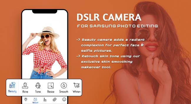‘DSLR Camera for samsung : Shot on samsung Camera ’ is a dual watermark stamp app to add ‘Shot On’ & ‘Shot By’ watermark tags on photos with logo on top or left of text.