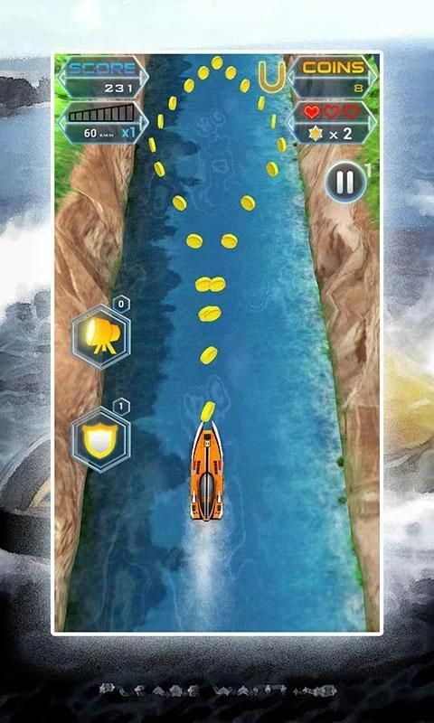 Tilting the phone screen, control the direction of the boat. Tap the screen to speed up. Collect coins to unlock more boat.