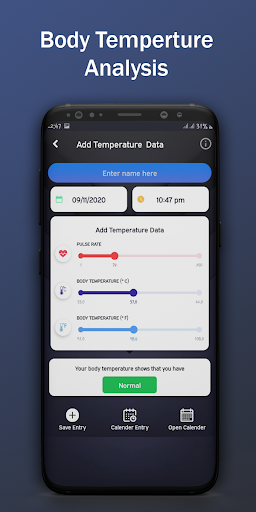 Body Temperature Fever Thermometer Records Diary App gives information related to your body temperature and allows the users to store the temperature values. All the stored values can be retrieved at any time and this gives full history of persons records. Body Temperature Thermometer Measure App info allows uses to view the saved records in the form of graphs, this gives proper visual representation of temperature readings of a person.