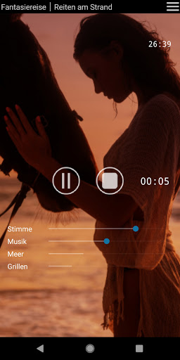 Il peut être sélectionné sous 3 musique de relaxation et 9 sons de nature, qui peuvent être adaptés individuellement au volume de la voix. Si vous le souhaitez, la musique / les sons peut également être utilisée seule (sans langage) pour la détente ou s'endormir.
