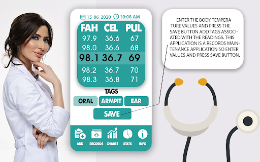This application is developed to record and save body temperature reading values in this optimized application, maintain history of fever in more logical form. This application keeps the record of your maximum and minimum temperature to have a healthy and better life. This application provides the user the option to store data and later view history user can view data in the form of charts. The app supports multiple users. You can automatically generate the diagrams and the graph of your body temperature history the application represents the data in the form of multiple graphs like line graphs and chart graph. Those Patients who are suffering from fever must be very careful with their body temperature because it will affect the body’s immune system and it has greater significance now a days. This application has best info and guidelines that would help the user to stay healthy and fit for a longer period of time.