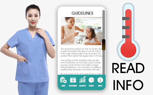 Description of Body Temperature Thermometer: Fever App Logs Diary