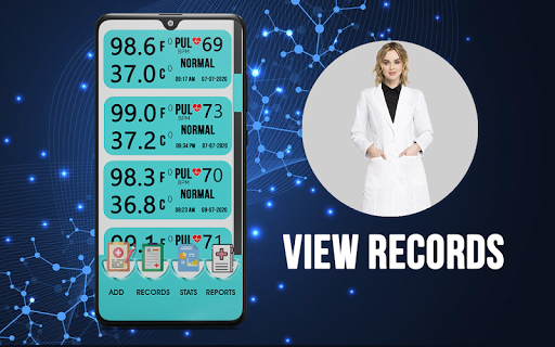 This application will later generate reports in multiple formats with every analytical data required. Enter your body temperature values in unit Celsius or Fahrenheit to see the sliders moving. First launch the application and then enter the values and press the save button to maintain the records and later view these records. Record is automatically graphed and you can see the transition of body temperature at a glance. It can be recorded with symptoms such as runny nose and sore throat, so it will be very easy to tell the doctor about the symptoms. You can enter your pulse values, too. You can even check the temperature ranges of your body on graph based on data saved. This application will create charts and graphs on the basis of entered data. Adjust time or date if you have to, user can also BMI while adding the values.