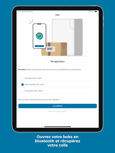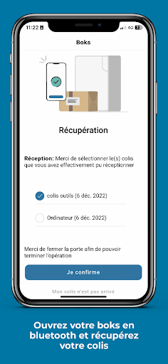 - Téléchargez notre application mobile gratuite pour vous enregistrer sur votre Boks via votre smartphone. Cela vous permettra de piloter votre boîte à colis en quelques clics (reception, suivi, envoi et retour de vos colis),