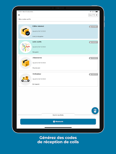 - Générez des codes d'ouvertures pour votre boîte à colis,