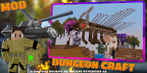 Welcome to the Dungeons Craft Mod for Pixel PE Craft Game. This blocks mod adds to your worlds more dimensions, monsters, guns, weapons, mobs, vehicles, skins, wallpapers and village guards. Mainly this craft app contains not only one mod. You will have access to a two additional mods or maps, and also you will find a big amount of skins to play with in your pixel worlds and wallpapers for your devices.