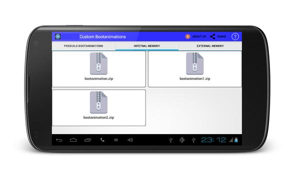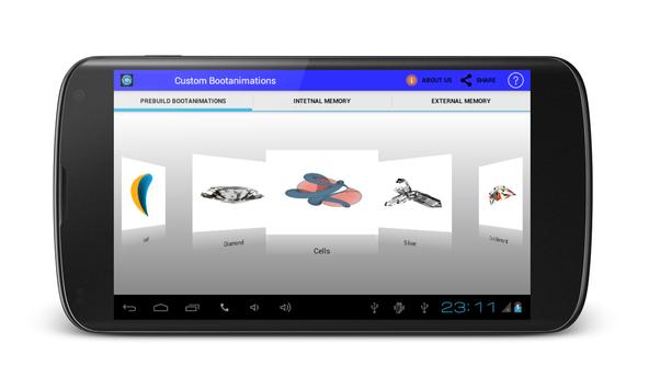 Custom BootAnimations is ROM Tool Box.If you are geting bored with your traditional boot animations on your phone, get change your phone pree-build custom boot animations if your device is rooted.Custom bootanimations Changer offered various types of pree installed bootanimations in applications. Install boot animations using sd card, But your phone must be rooted.