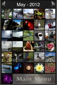 Gives you thumbnails for the images captured on a given month and lets you see which days that are not done yet. Tapping on any given day takes you to that word.