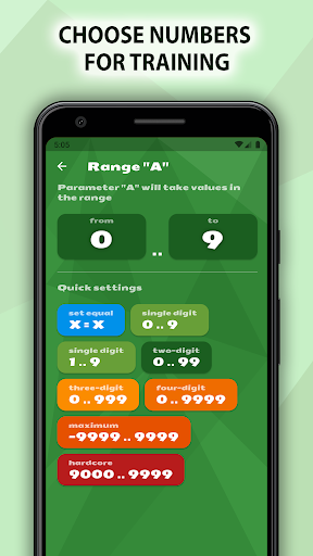 ★ Kids. Master the basics of arithmetic. Learn a multiplication table. It is recommended to set a minimum of answer options and do not limit duration. But the number of tasks can be limited, for example: solve 30 tasks for addition and subtraction.