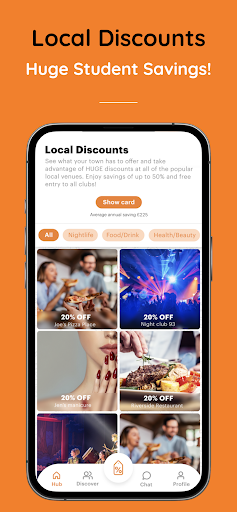 We offer HUGE discounts at local venues in your town including free entry to nightclubs and up to 50% off food and drink!