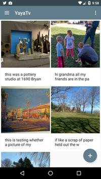 Children and their parents create short video messages on the phone for sharing to older family members. The YayaTV player app easily plays back a series of videos on any smart TV having chromecast. Any clip that you create on your phone can be shared, played back on any smart TV. Seniors will delight in a channel of big screen TV content that is curated just for them by the kids and grand-kids.